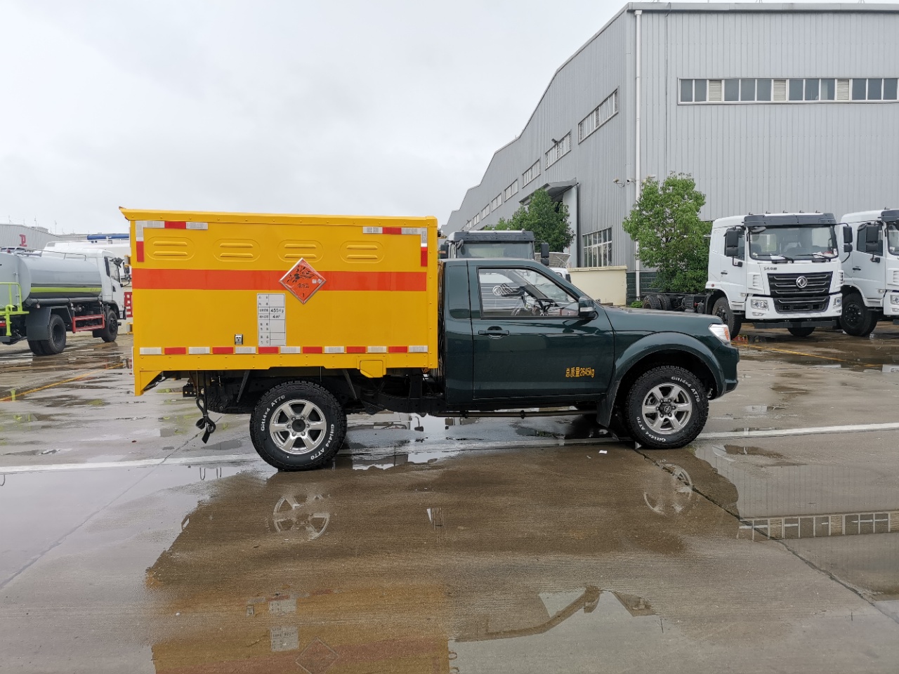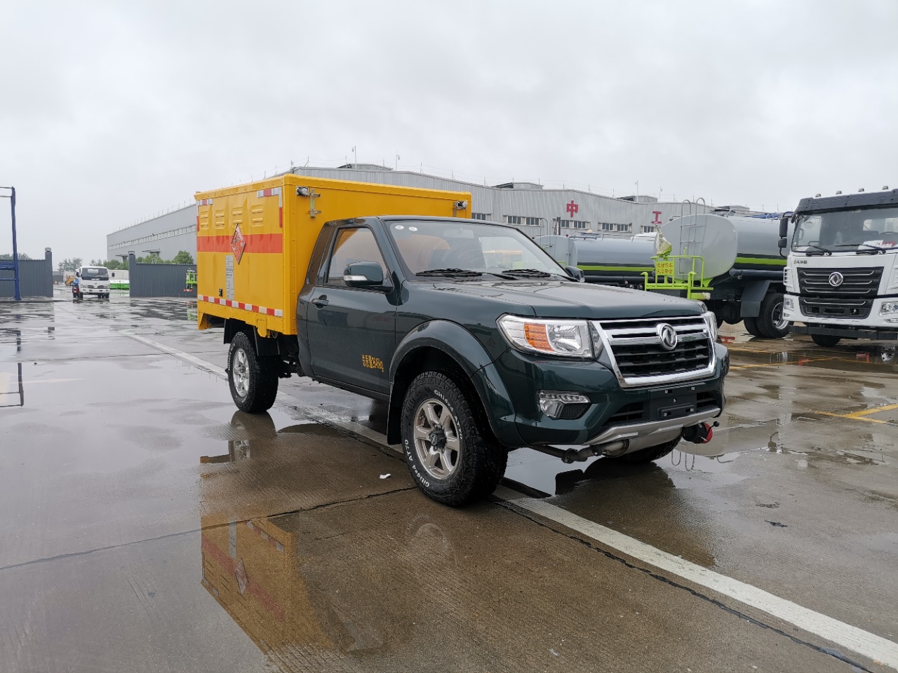廂體頂部封閉,不可開啟;廂體可選裝無側(cè)門;選裝不同形式的側(cè)開門;車身側(cè)面及后部粘貼橙色反光標(biāo)識和爆炸品菱形標(biāo)示,在車體后部設(shè)置安全標(biāo)示;危險貨物運輸車輛的車輛類型EX/Ⅱ;用于運輸具有**包裝的黑火藥,壓縮黑火藥,硝胺炸藥,電引爆雷管,爆破炸藥,點燃導(dǎo)火索,專用煙火制品,類項號:1.1D,1.1D,1.1B,1.1D,1.4G,1.1 D,1.1G;該車安裝具有衛(wèi)星定位功能的行駛記錄儀;ABS型號:EV5010,EV5011;ABS生產(chǎn)廠:博世汽車部 件(蘇州)有限公司,博世汽車部件(蘇州)有限公司;發(fā)動機**大凈功率**kW;僅用子午線輪胎,裝備限速裝置,前置式排氣管,排氣制動;前輪采用盤式制動;油耗對應(yīng)關(guān)系:ZD25T6(7.7) |