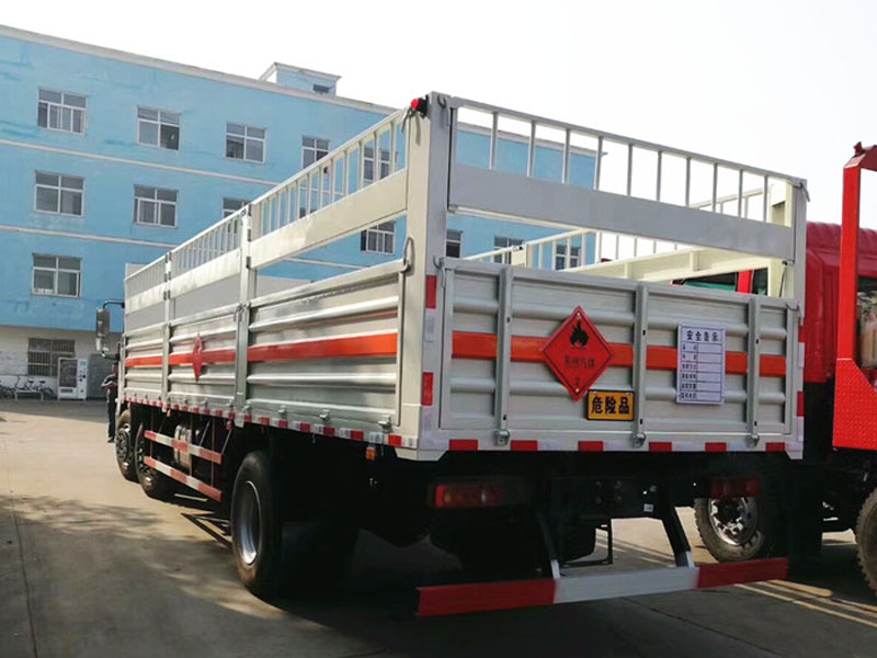 該車為危險品貨物運(yùn)輸車,用于運(yùn)輸具有**容器(瓶)包裝的易燃?xì)怏w(罐(瓶)裝壓縮氫、液化石油氣),類項號為2.1,和非易燃無毒氣體(罐(瓶)裝二氧化碳,氧氣,氮?dú)?氬氣),類項號為2.2.選裝貨箱側(cè)板、后門結(jié)構(gòu);選裝箱體結(jié)構(gòu).側(cè)防護(hù):材質(zhì)Q235,螺栓連接;后下防護(hù):材質(zhì)Q235,螺栓連接,斷面尺寸120X60mm,離地高度540mm;安裝具有衛(wèi)星定位功能的行駛記錄儀.裝有ABS,ABS型號:3631010-C2000,生產(chǎn)廠家:東科克諾爾商用車制動系統(tǒng)(十堰)有限公司.選裝前霧燈,駕駛室頂部裝飾燈為選裝件.僅選用前盤式制動器,前置排氣管,子午線輪胎,限速裝置的底盤,限速80km/h.